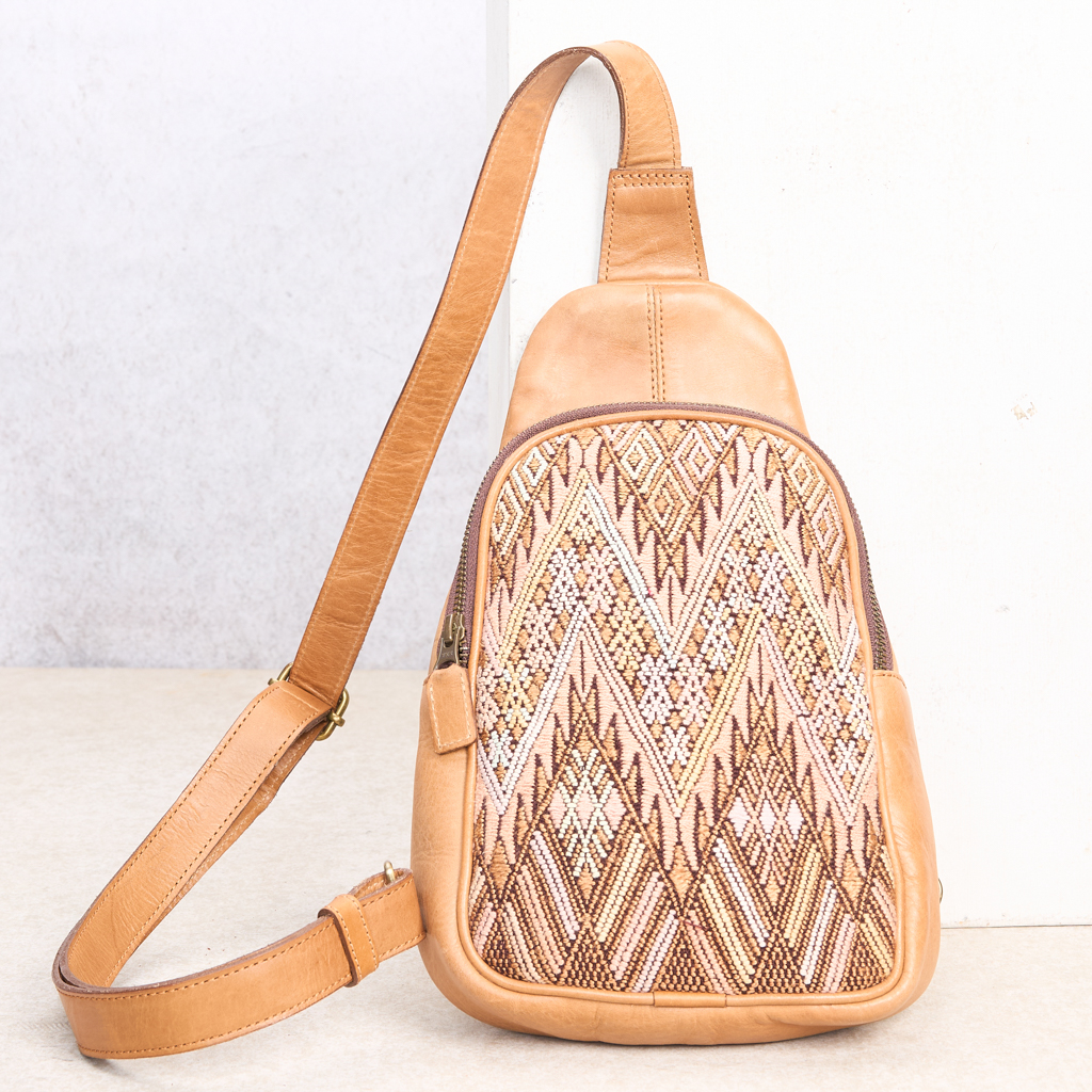 Each Diego Sling with vintage textile is completely one-of-a-kind and incredibly special. The handwoven fabric on each bag was once worn as a Mayan huipil (blouse) and was ethically sourced and mindfully repurposed by our Mayan partnerships in Chichicastenango, Guatemala. Each purchase directly supports artisan families, helping them reach their economic goals.