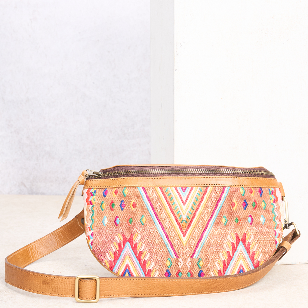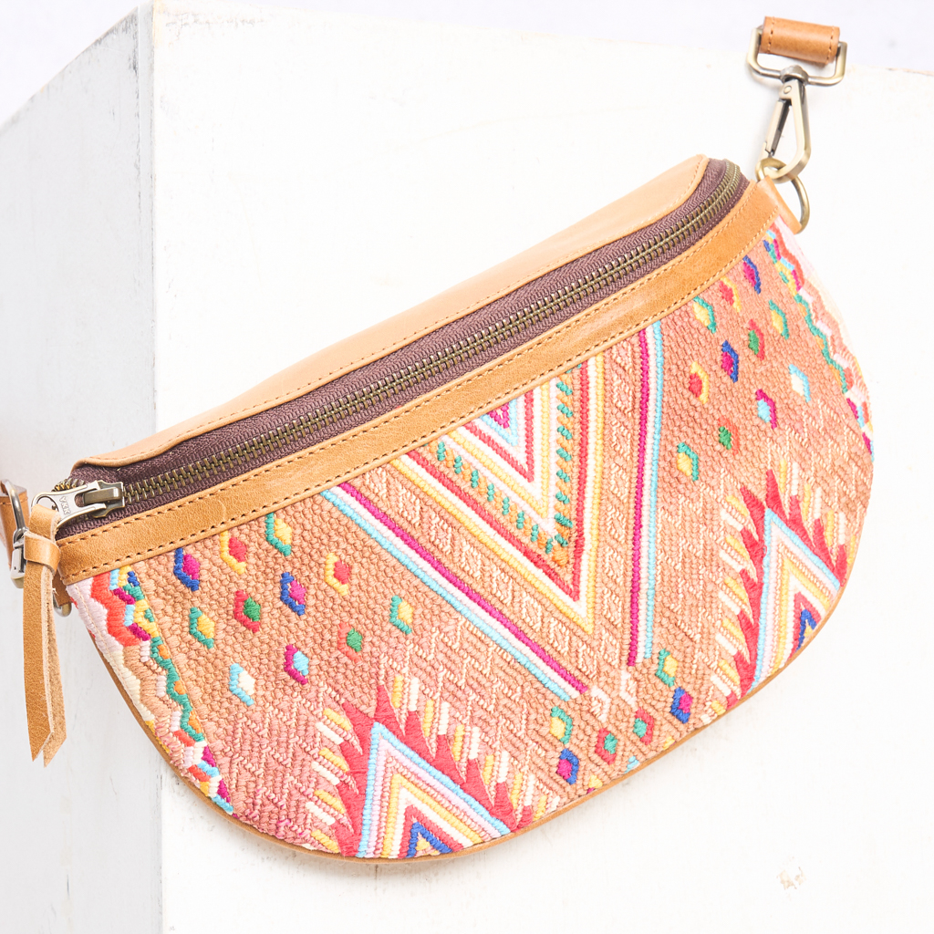 Our crowd-favorite Vesper Sling with even more soul. This beauty has the same features as our all-leather version, but with the addition of a stunning one-of-a-kind vintage textile. The handwoven fabric was once worn as a Mayan huipil (blouse) and was ethically sourced and mindfully repurposed by our Mayan partnerships in Chichicastenango, Guatemala.