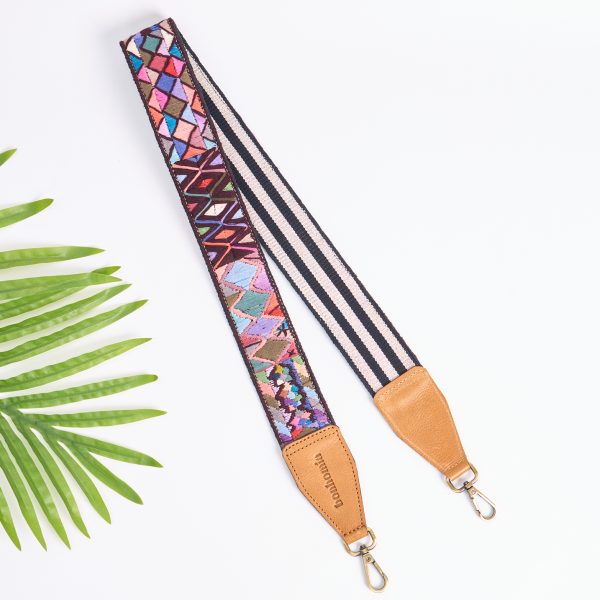 This incredibly unique, one-of-a-kind strap is crafted from a vintage, hand-embroidered ‘faja’ (fah-ha) and is ready to bring a new eclectic feel to your bag or camera. A ‘faja’ is a beautiful belt that is part of a Mayan woman’s ‘traje’, or traditional dress. Each is special and carefully designed in the desired style of the incredible artist who made it and wore it first. Our partners in Guatemala then gave it a new life by adding genuine leather details and antiqued brass hardware to be used however you wish. The original strap and textile is vintage. Small signs of previous wear are to be expected and appreciated for the story it tells.