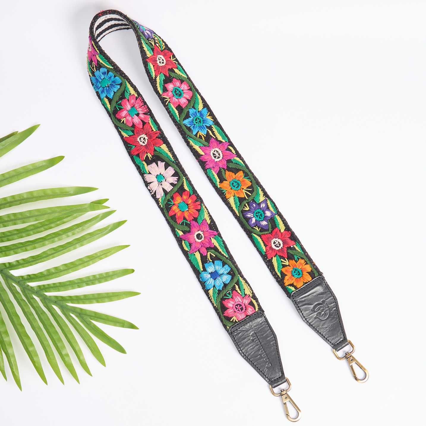 This incredibly unique, one-of-a-kind strap is crafted from a vintage, hand-embroidered ‘faja’ (fah-ha) and is ready to bring a new eclectic feel to your bag or camera. A ‘faja’ is a beautiful belt that is part of a Mayan woman’s ‘traje’, or traditional dress. Each is special and carefully designed in the desired style of the incredible artist who made it and wore it first. Our partners in Guatemala then gave it a new life by adding genuine leather details and antiqued brass hardware to be used however you wish. The original strap and textile is vintage. Small signs of previous wear are to be expected and appreciated for the story it tells.